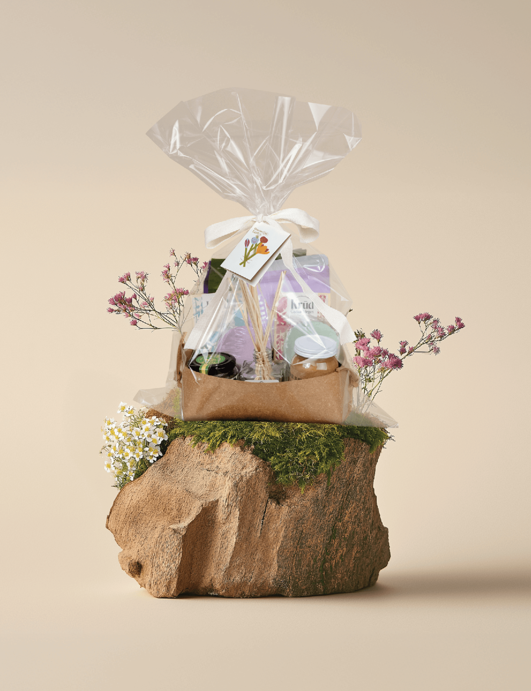 La canasta se entrega envuelta en celofán con un moño y tarjeta personalizada (Escríbenos por whatsapp para elegir el modelo).